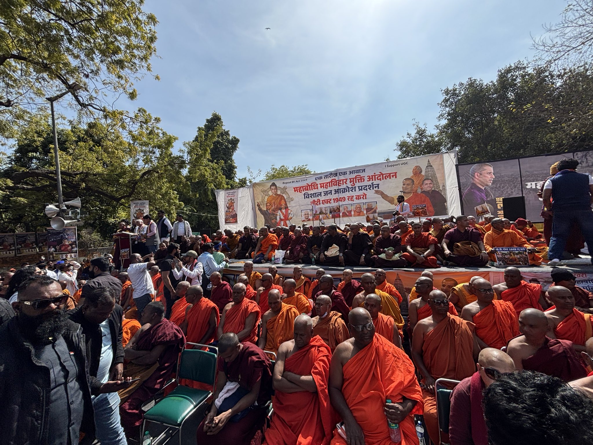 विदर्भीयन बाणा विशेष प्रतिनिधी, नवी दिल्ली/नागपूर, १३ फेब्रुवारी २०२६ नवी दिल्ली : बोधगयातील महाबोधी महाविहार (महाबोधी टेम्पल) चे पूर्ण प्रशासकीय नियंत्रण बौद्ध समुदायाकडे देण्याच्या मागणीसाठी आज (१२ फेब्रुवारी २०२६) दिल्लीतील जंतर-मंतर येथे लाखो बौद्ध अनुयायांनी एकत्र येऊन महाबोधी महाविहार मुक्ती जन आक्रोश आंदोलन चा जोरदार निषेध प्रदर्शन केला. ऑल इंडिया बौद्ध फोरम (AIBF) आणि विविध बौद्ध संघटनांच्या नेतृत्वाखाली झालेल्या या ऐतिहासिक मोर्च्यात महाराष्ट्र, बिहार, उत्तर प्रदेश, मध्य प्रदेश, लडाख, त्रिपुरा यासह देशभरातील बौद्ध समाज मोठ्या संख्येने सहभागी झाला होता.मोर्च्यात सहभागी हजारो अनुयायांनी “जय भीम”, “नमो बुद्धाय”, “महाबोधी मुक्त करा”, “बौद्धांना मंदिराचे अधिकार हवे” अशा घोषणा देत केंद्र सरकारवर दबाव आणला. मोठ्या प्रमाणात बौद्ध भिक्खू, भिक्खुणी, आंबेडकरी कार्यकर्ते, सामाजिक संघटना आणि सामान्य नागरिक उपस्थित होते. मोर्च्यातील भव्य रॅली, ध्वज, बॅनर आणि बाबासाहेब आंबेडकर, बुद्धांच्या छायाचित्रांसह सजलेल्या मंचाने संपूर्ण जंतर-मंतर परिसर गजबजला होता.आंदोलनाची मुख्य मागण्या१९४९ च्या बोधगया टेम्पल अॅक्ट चे रद्दीकरण करून मंदिराचा पूर्ण नियंत्रण बौद्ध समुदायाकडे देणे.बोधगया टेम्पल मॅनेजमेंट कमिटी (BTMC) मधील जिल्हाधिकारी (बहुतेकदा हिंदू अधिकारी) अध्यक्षपद रद्द करणे.यूनेस्को जागतिक वारसा स्थळ असलेल्या या पवित्र स्थळाचे व्यवस्थापन आणि संरक्षण बौद्धांना स्वतंत्रपणे करण्याचा अधिकार देणे.बौद्ध समाजाला धार्मिक स्वायत्तता आणि सन्मान मिळावा.प्रमुख नेत्यांच्य प्रतिक्रिया: राजकुमार बडोले (आंबेडकरी नेते): “महाबोधी महाविहार हे बौद्धांच्या श्रद्धेचे केंद्र आहे. हे मंदिर आम्ही बदलणार नाही, पण आम्हाला आमचे अधिकार हवे आहेत. हा लढा बौद्ध समाजाच्या सन्मानाचा आहे.” भिक्खू संघरत्न (AIBF नेते): “१९४९ पासून सुरू असलेला अन्याय आता संपवला पाहिजे. केंद्र सरकारने आमच्या मागण्या मान्य केल्या नाहीत तर आंदोलन अधिक तीव्र होईल.”विविध राज्यांतील आमदार, खासदार आणि नेत्यांनीही आंदोलनाला पाठिंबा दिला. महाराष्ट्रातील अनेक आमदार आणि सामाजिक कार्यकर्त्यांनी या मोर्च्यात प्रत्यक्ष सहभाग घेतला. पोलीस आणि प्रशासनाची भूमिका पोलीसांनी मोठ्या प्रमाणात बंदोबस्त ठेवला होता. आंदोलन शांततेत पार पडले असून, कोणताही अनुचित प्रकार घडला नाही. आयोजकांनी शांततापूर्ण पण ठाम आंदोलन करण्याचे सांगितले होते. विदर्भातील सहभाग नागपूर, चंद्रपूर, अमरावती, यवतमाळ, भंडारा गोंदिया यासह विदर्भातील बौद्ध समाजाने या आंदोलनात मोठ्या प्रमाणात सहभाग घेतला. विदर्भातील आंबेडकरी आणि बौद्ध संघ